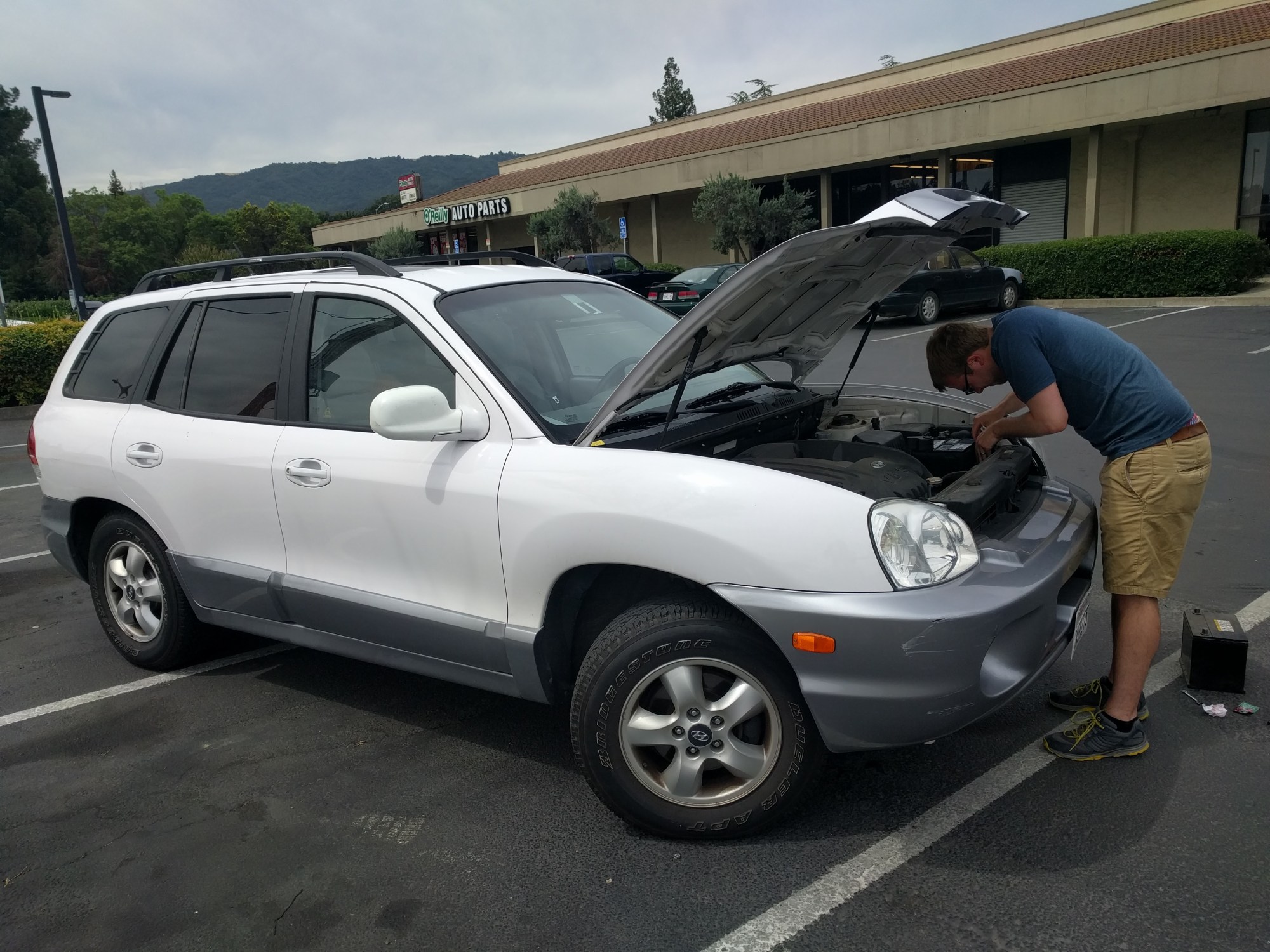 Just an hour south of San Francisco, we pulled into a shop to test our battery. It was extremely outdated so Parker replaced it in the parking lot. Then we were off once more!
