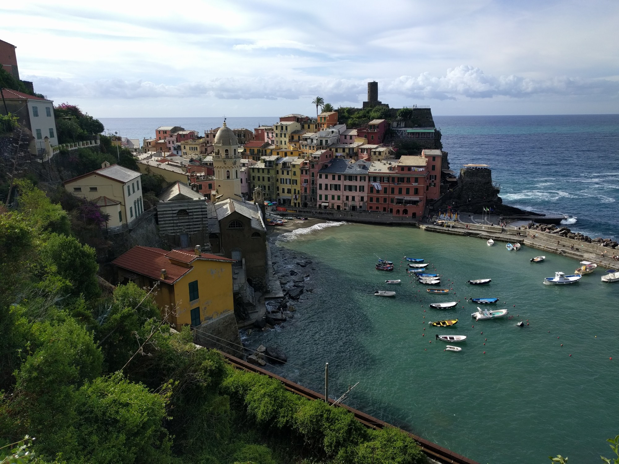 Our next stop was the small Italian town of Monterosso al Mare. This town is part of Cinque Terre, a grouping of five cities connected by ancient hiking trails (and more modern trainlines) along the coast. These towns are all very similar but still maintain unique qualities. They are also a UNESCO World Heritage Site. Our Airbnb host told us that her family has lived there since the 5th or 6th century – say whaaaat? There was an incredible storm during our first night that lasted for several hours. The steep, narrow, and windy stone streets quickly filled with rushing water. Thunder boomed and echoed across the hills. We planned on setting out early the following morning to hike but were met by many signs warning of potential landslides due to the intense storm. Our leader, Eric, bravely (or brazenly) disregarded the warnings and set off. We were relieved to find the trails were not nearly as badly damaged and with a careful step we set off. Pictures do not come close to doing this area justice. It was absolutely stunning with many terraces carefully cut into the cliffside where grape vines grow. We made it to the second town of Vernazza and then after a stop for an espresso on to Corniglia. The remaining two trails have been closed for the last several due to the need to rebuild following severe landslides and flooding.