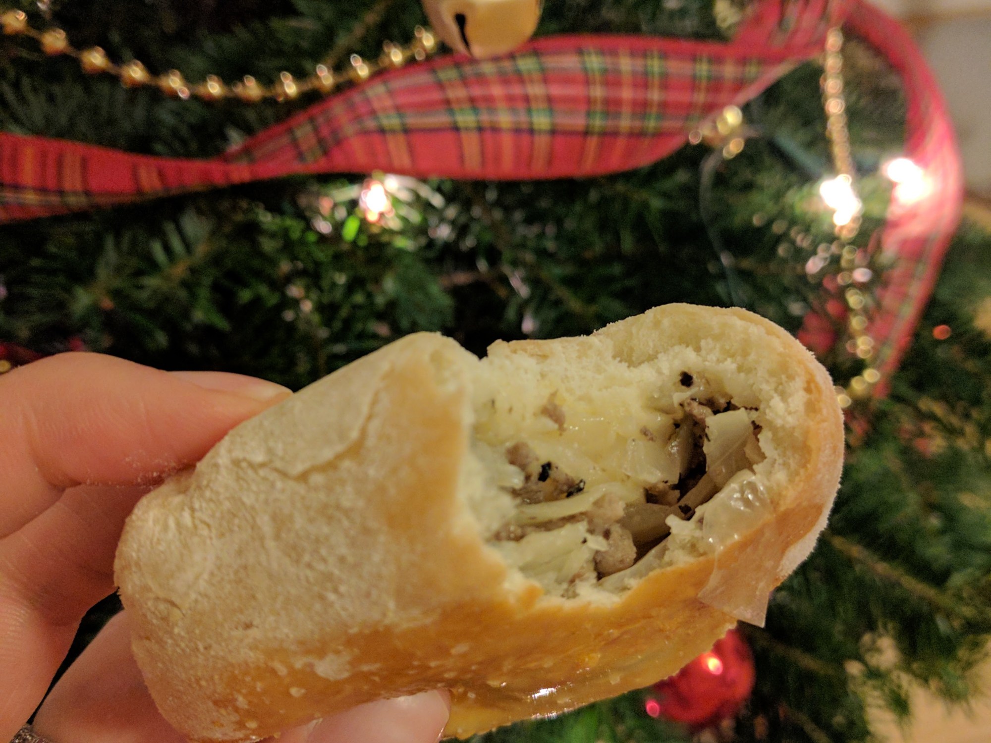 While back in Kansas last month, my grandmother made a delicious and old family recipe. These fluffy, sweet buns are stuffed full of ground beef and cabbage and are oh so good. Parker grew up eating what his Grammie calls “Bierocks.” My Grandma Weber calls them “runza.” Whatever your name of choice, these tasty buns are a long-established classic of the Mid-West. Our Volga German ancestors brought this tradition with them as the immigrated to the US many years ago. On a cold Sunday afternoon, we decided to try our hand at this classic. We also made a big batch of glühwein [a ubiquitous cold weather drink, essentially mulled/spiced wine]. Our feast paired nicely with a Harry Potter movie marathon and a new board game to play. Prost und frohe Weihnachten!