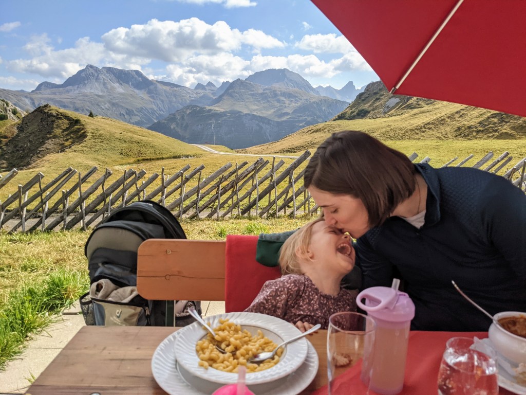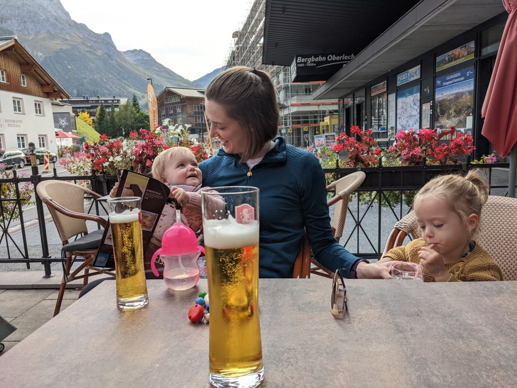 We went on hikes (well… Parker and I did, the girls were carried), swam, snuggled, waved at cows, explored playgrounds, and ate all the food. In true dramatic flair, our time in Lech was bookended with bouts of vomit from the two year old. (We discovered that she has inherited her mother’s tendency to motion sickness). This – as well as the tiredness the parents felt and juggling acts of mealtime – served as a reminder that we were not on vacation but rather a family trip. Perhaps we will have a real vacation someday but for now we are very grateful for time spent as a family in such a beautiful place and wouldn’t trade it for the biggest plate of Kaiserschmarrn or Apfelstrudel.